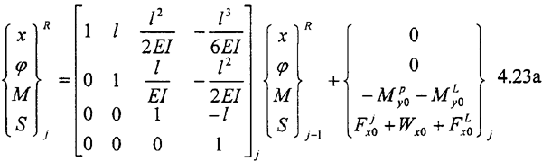 為總剛度陣,乃是因?yàn)槭剑?.20)還不是彎扭耦合振動(dòng)方程的最終形式。這是因?yàn)?):式(4.20)右端含有未知力ΔFxjk,ΔFyjk,ΔMjk,ΔNjk,ΔTj,(k=w,N),方程組中未知量個(gè)數(shù)多于方程個(gè)數(shù);2):ΔFxjk,ΔFyjk,ΔMjk,ΔNjk,ΔTj,(k=w,N)是本征的。必須解決上述這兩個(gè)問(wèn)題,才能得到彎扭耦合振動(dòng)方程。因而我們還需要尋求一種關(guān)系,通過(guò)這種關(guān)系,解決上述兩個(gè)問(wèn)題,使得各轉(zhuǎn)子的彎扭振動(dòng)及轉(zhuǎn)子間的彎扭振動(dòng)耦合起來(lái),并使彎扭耦合振動(dòng)的方程組有定解,即最終使(4.20)式化為如下標(biāo)準(zhǔn)形式