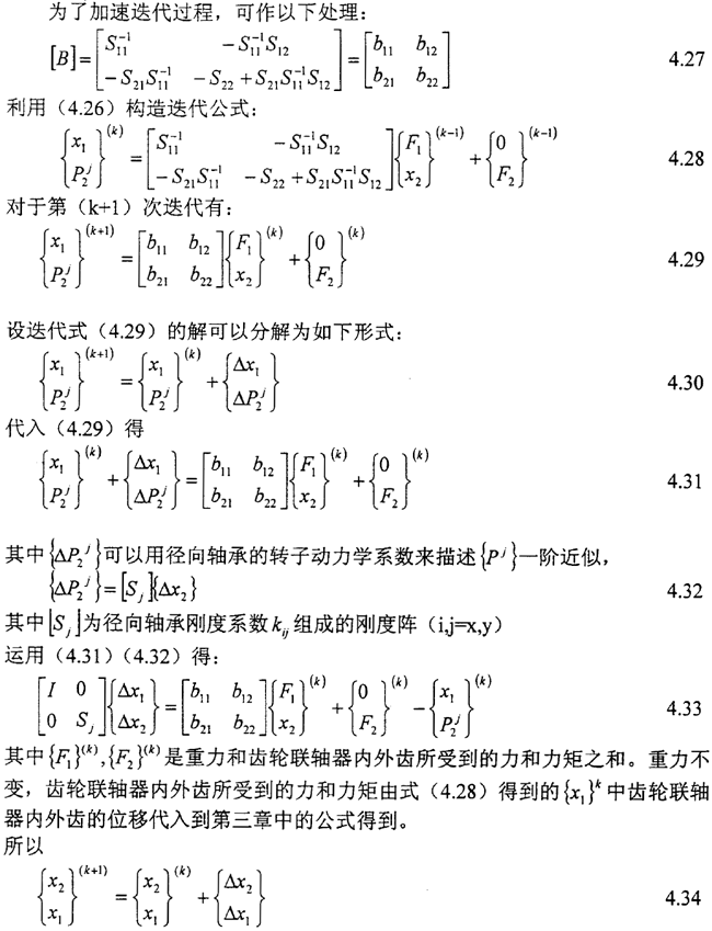 方程(4.1a),(4.1b)仍然可以被用來(lái)求解軸系的負(fù)荷分配,只不過(guò)齒時(shí)應(yīng)表在成如下形式: