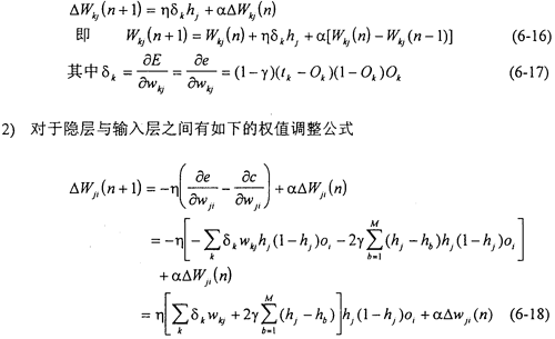 普通BP訓練算法在它的訓練過程存在著不確定性除了上節(jié)提出的一些因素外,還有一個重要的原因,就是它的誤差函數(shù)不盡合理。它的誤差函數(shù)決定了靠近網(wǎng)絡輸出端的權(quán)在訓練一開始調(diào)整較大,而遠離輸出端的權(quán)在訓練過程中調(diào)整始終較小,從而把網(wǎng)絡訓練速度降低,甚至把網(wǎng)絡引入訓練不收斂的地步。本節(jié)針對這種情況,采用一種新誤差函數(shù),保證不管遠離還是靠近網(wǎng)絡輸出端的權(quán)在訓練時同步調(diào)整,提高了網(wǎng)絡訓練速度和網(wǎng)絡收斂性,基于新的誤差函數(shù)的算法稱為MBP算法。算法如下: