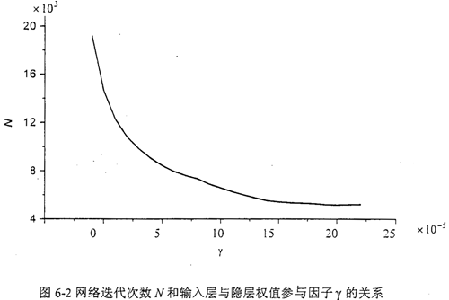 以表6-1標準訓練樣本為例,采用MBP法,網(wǎng)絡有較好的收斂性,訓練速度有較大的提高,見圖6-2。圖中,當γ=0時,MBP法即為普通的BP算法。