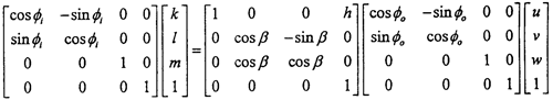 進(jìn)行坐標(biāo)變換,則坐標(biāo)系OXjYjZj中的某點(diǎn)在OXiYiZi坐標(biāo)系中的坐標(biāo)可表示為: