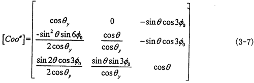 由式(3-6)可知|θy|<θ,|θx|<θ一般來說θ值非常小,則θy和θx則更小。到此方向余弦矩陣[Coo″]的所有項(xiàng)均可求出。其具體的形式如下(為簡(jiǎn)化書寫將θy作為已知參數(shù)代入):