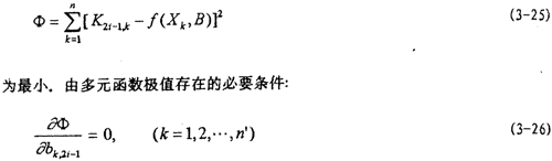 已知K2i-1 (A)是關(guān)于自變量X=[A,A2,…An′]T和待定參數(shù)B=[ b0,2i-1,b1,2i-1,…,bn′,2i-1]T的形式已知的函數(shù)(3-13),簡寫成: