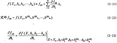 鄰域內(nèi)將函數(shù)f(X,B)作代臺(tái)勞級(jí)數(shù)展開,并略去△i的二次及二次以上項(xiàng)得: