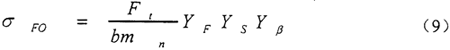 σFO——齒根應(yīng)力的基本值,N/mm2,對于大、小齒輪應(yīng)分別確定。