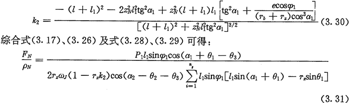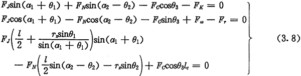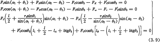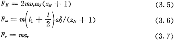 由于考慮了慣性力,所以力Fc不通過交點Q,lc也是一個未知數(shù)。若根據(jù)輸入功率確定出FJ,則方程組(3.8)只剩下FN、FC及l(fā)c三個未知數(shù)了。