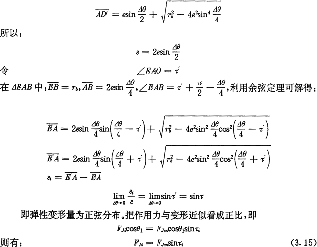 上式中:FJm為對應(yīng)最大變形處的作用力;FJi為激波器對第i個推桿的作用力;τi為第i個推桿內(nèi)滾子中心與激波器短軸所夾的圓心角。如圖3.2所示。