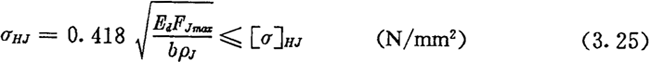 激波器與內(nèi)滾子的接觸,顯然是兩個圓柱體的相壓接觸,由彈性力學(xué)可知,在接觸處產(chǎn)生的最大接觸應(yīng)力σHJ可由下面的赫茲應(yīng)力公式來計算: