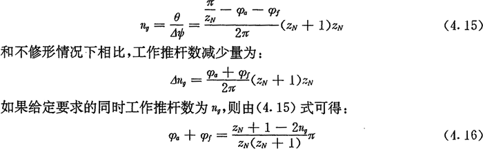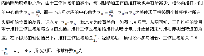 對(duì)于TW-3-16推桿減速器,要求內(nèi)齒圈齒廓經(jīng)修形后同時(shí)工作的推桿數(shù)ng不少于5,按上述方法確定的修形量為: