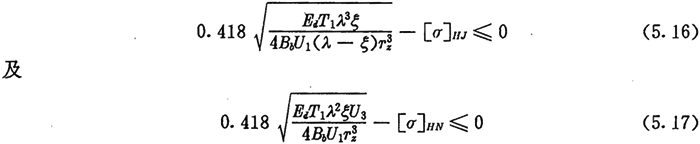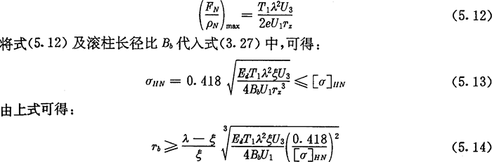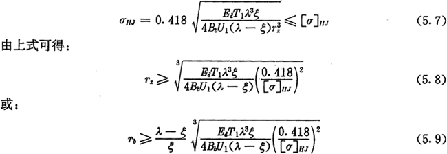 上式為根據(jù)內(nèi)齒圈與外滾子的許用接觸應(yīng)力所確定的激波器半徑的取值范圍。顯然激波器半徑Tb的取值應(yīng)同時滿足式(5.9)及式(5.14)的要求。