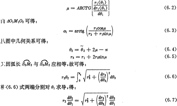 從以上設(shè)計過程可以看出,根據(jù)非圓太陽輪設(shè)計行星輪為圓的純滾動非圓行經(jīng)齒輪傳動機構(gòu)時,并不是對任意指定的太陽輪節(jié)曲線都有解。當(dāng)太陽輪節(jié)曲線的周期數(shù)n1給定后,節(jié)曲線必須有兩個可調(diào)整的參數(shù)(例中的a和b)的要由節(jié)曲線的封閉條件及輪齒等分條件來確定。齒輪模數(shù)m和太陽輪齒數(shù)z1是被預(yù)先指定了的。當(dāng)各參數(shù)求出后,要用不干涉條件(6.28)式進行校驗,若發(fā)生干涉,應(yīng)調(diào)整z1數(shù)值,重新計算太陽輪的可調(diào)整參數(shù)。