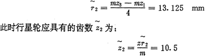 時常不是整數(shù),我們稱它為行星輪的參考齒數(shù)。實際采用的太陽輪雖然和退化的圓齒輪具有相同的模數(shù)m和齒數(shù)z1,但是它的形狀不是圓的,這就使得實際采用的行星輪齒數(shù)z2應(yīng)比參考齒數(shù)