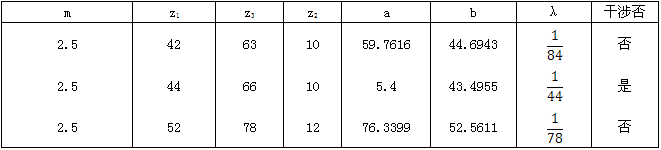 從(6.37)、(6.38)、(6.43)三式所組成的方程組中,解出a、b及z2,將齒數(shù)代入( 6.40)便得到臨近發(fā)生運動干涉時的λ值。因為z2是整數(shù),當(dāng)m給定后,由上面三個式子所組成的方程組一般是無解的。若把m也作為一個參變數(shù),這時方程有解。
