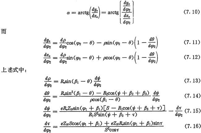 之內(nèi),只能使整個(gè)齒廓曲線的一部分由方程式(7.9)正確表示。為了使齒廓上所有的點(diǎn)都能用方程式(7.9)來(lái)正確計(jì)算,α的表示式應(yīng)為: