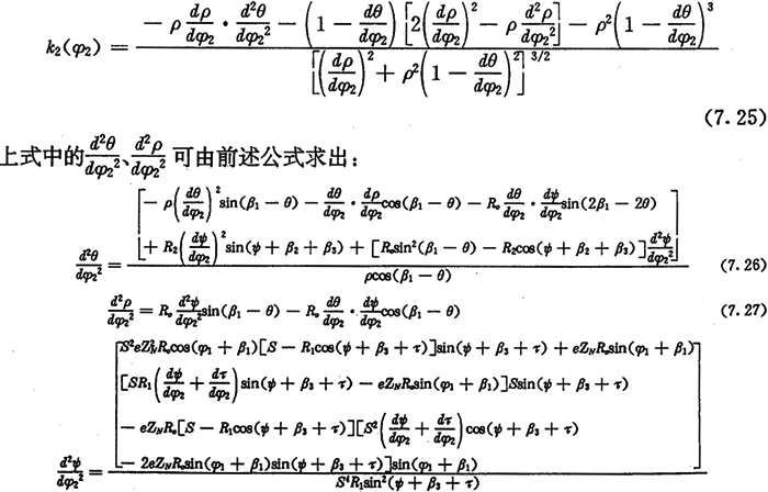 設(shè)k2為外滾子中心軌跡曲線的相對(duì)曲率,將(7.8)式中的xo、yo代入(2.23)式,并整理后可得