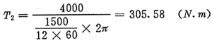 由驅(qū)動功率及輸入轉(zhuǎn)速,可近似(忽略摩擦損失)求得輸出扭矩T2為: