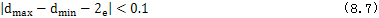 上式中的xN,yN是由式(7.9)表示的齒廓上的點(diǎn)的坐標(biāo)值,當(dāng)φ1=0時,點(diǎn)(xN,yN)對應(yīng)齒頂,這時d有最小值偏dmin,當(dāng)φ1=φlm時,點(diǎn)(xN,yN)對應(yīng)齒根,這時d偏,齒全高等于己的最大與最小值之差。齒全高限制條件可寫為: