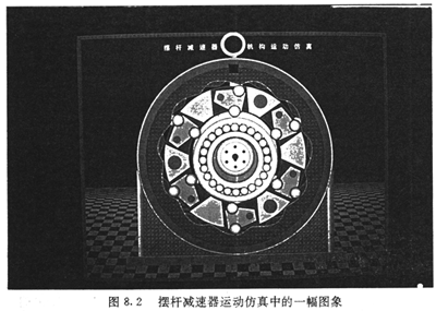 根據(jù)上述基本設(shè)計(jì)參數(shù)及各零部件的結(jié)構(gòu)參數(shù),將各主要運(yùn)動部件的工作過程在計(jì)算機(jī)屏幕上動態(tài)顯示出來。圖8.2是動態(tài)仿真過程中的一幀圖象。計(jì)算機(jī)仿真結(jié)果與理論分析完全一致。