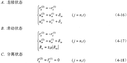 用rij和uij分別表示輪齒在第i個接觸點(diǎn)局問坐標(biāo)系j(j=n,t)方向上的接觸力分量和位移分量,局部坐標(biāo)系如圖4-12所示,上標(biāo)(1)、(2)分別表示主動內(nèi)齒輪和從動外齒輪,則