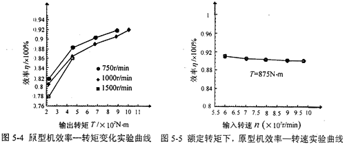 對(duì)三環(huán)減速機(jī)原型機(jī)和改進(jìn)型機(jī)進(jìn)行效率實(shí)驗(yàn),在相同的傳動(dòng)條件下,改進(jìn)型機(jī)的效率略高于原型機(jī),在額定轉(zhuǎn)速和額定轉(zhuǎn)矩下,傳動(dòng)效率可達(dá)92%。