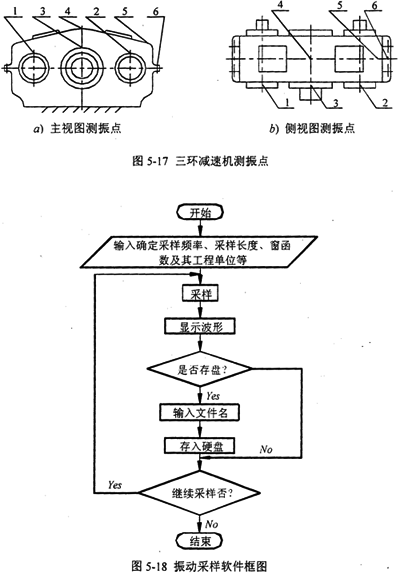 實(shí)驗(yàn)采用壓電式加速度計(jì)測(cè)量三環(huán)減速機(jī)上特征點(diǎn)的振動(dòng)加速度,并且將原型機(jī)與改進(jìn)型機(jī)的情況進(jìn)行比較;同時(shí)對(duì)采集的加速度信號(hào)進(jìn)行積分處理,求得特征點(diǎn)的振動(dòng)速度,計(jì)算振動(dòng)烈度,并且將原型機(jī)與改進(jìn)型機(jī)的情況進(jìn)行比較,從而確定減振效果。
