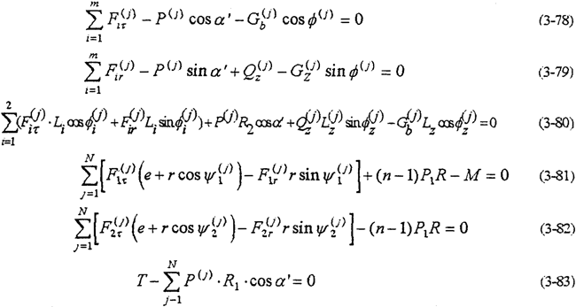 ——共可得到4個方程。由式(3-59)-(3-63)就構(gòu)成多相并列雙曲柄機構(gòu)輸入式二齒環(huán)內(nèi)齒行星傳動機構(gòu)的動力分析數(shù)學(xué)模型。