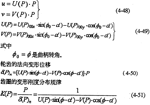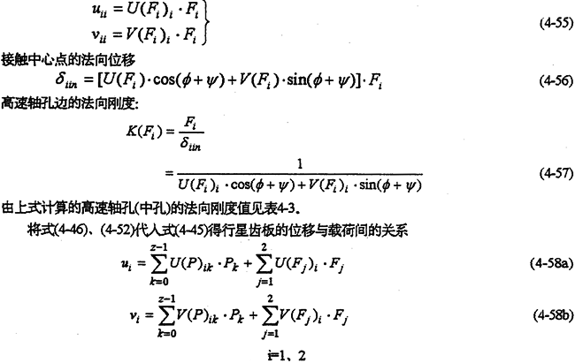 式(4-35)中的F是行星承軸載荷。偏心套外圓周邊某接觸點(diǎn)的法向位移