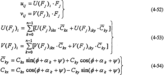 式(4-51)~(4-53)中U(Fj)ikx,U(Fj)iky,V(Fj)ikx,V(Fj)iky為行星齒板柔度系數(shù)的值,由磁盤文件提供計(jì)算。Ckx,Cky由式(4-30)及式(4-33)計(jì)算。