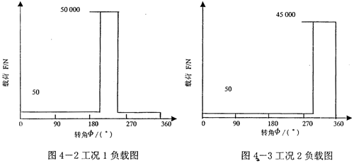 現(xiàn)假設(shè)有兩種運(yùn)行工況,其負(fù)載分別如圖4-2、圖4-3所示。通過兩種具體沖壓載荷情況來分析柔性速度補(bǔ)償裝置的補(bǔ)償性能。