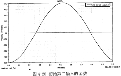 第一步:(1)給第二輸入一個函數(shù),假設(shè)V2(2)=50cos(2πt)mm/s,如圖4-20所示。