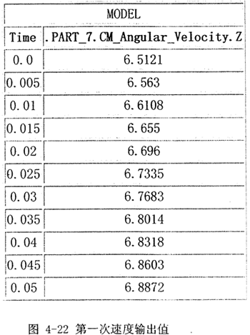 (3)同樣,將上述輸出速度圖每隔0.005秒采樣一次,得到一組輸出速度值的離散數(shù)據(jù),以數(shù)據(jù)文件格式輸出,如圖4-25所示(截取0.05秒內(nèi))。