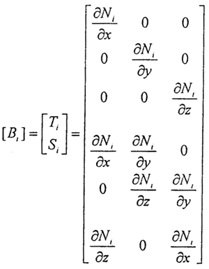 [△]為(3.1.3)中微分算子組成的矩陣,[B]為應變、位移關系矩陣,由總位能原理得: