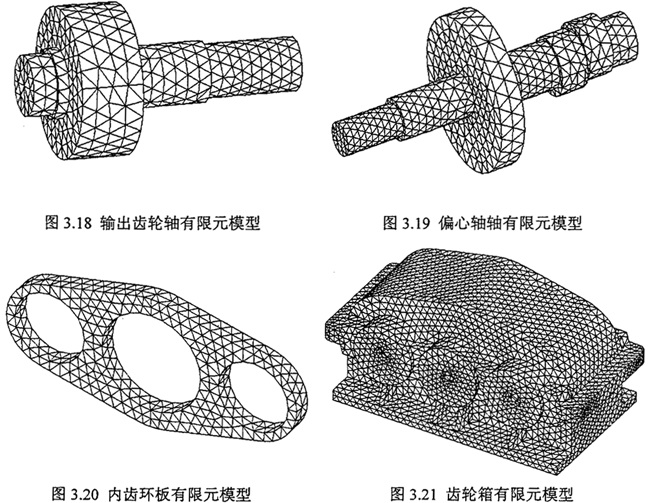 采用四節(jié)點(diǎn)四面體單元,利用軟件自由網(wǎng)格劃分法(Free Meshing )對輸出齒輪軸進(jìn)行有限元網(wǎng)格劃分。減速箱的其它零件采用相同的方法進(jìn)行有限元建模,圖3.18為輸出齒輪軸的有限元網(wǎng)格模型共劃分為3021個單元,835個節(jié)點(diǎn),圖3.19為偏心軸的有限元網(wǎng)格模型,共劃分為4098個單元,1188個節(jié)點(diǎn),圖3.20 為環(huán)板的有限元網(wǎng)格模型,共劃分為1505個單元,594個節(jié)點(diǎn)。