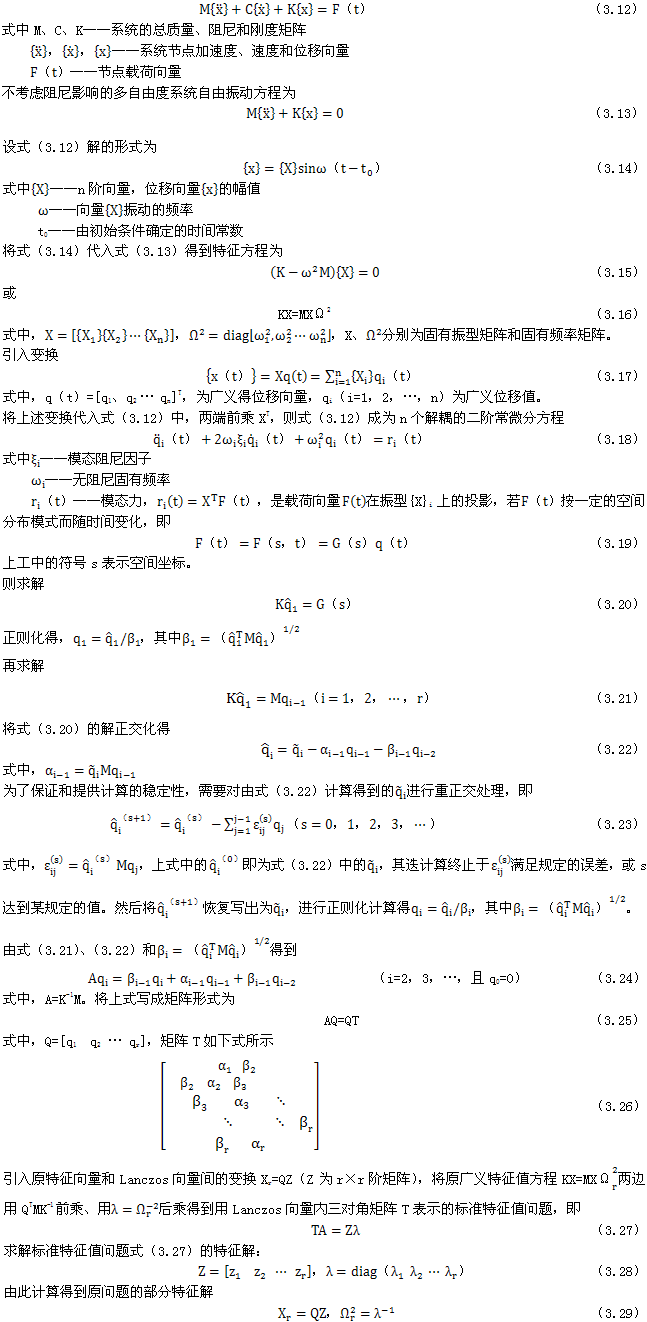 與其它特征值問題求解方法一樣,Lanczos算法的主要目的是求解結(jié)構(gòu)系統(tǒng)的動力學(xué)方程。