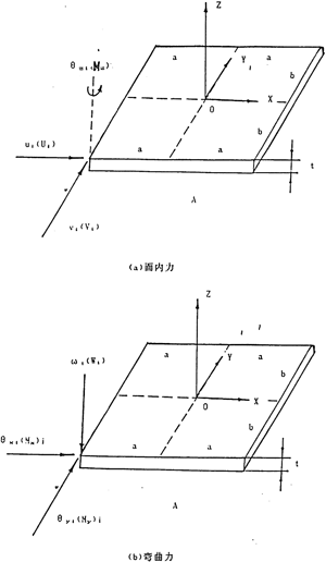 線性薄殼矩形元,它同時承受“面內”力和彎矩作用,如圖3-2所(a)、(b)所示。
