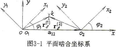 定軸平面嚙合傳動坐標(biāo)系如圖3-1所示。