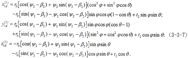 令φ1=φ2=φ,將M1,2、r2d(2)及f(t2,ψ2,φ2)=0解出的φ代入(3-3-6)的第三式,則可得到以t2、ψ2為參變量的外齒輪曲面的表達(dá)式。