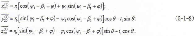 與第四章的非共軛齒面鼓形齒輪齒面方程推導類似,可以得出其齒面方程在S20坐標系的方程為
