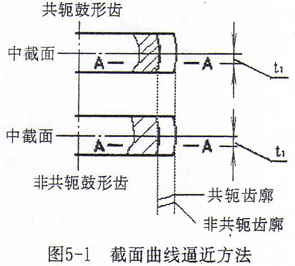 數(shù)學方法上,兩曲面的逼近是“極大極小問題”,雖已有這方面的理論探討,但還沒有成熟的計算軟件。本文采用截面曲線逼近的方法(如圖5-1所示),將軸向坐標離散,求得各截面上曲線逼近的δ值,再根據(jù)δ值的軸向分布形態(tài),確定擬合的函數(shù)形式,以最小二乘法擬合出鼓度曲線。