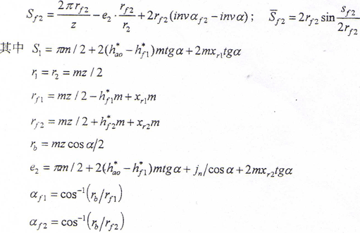 鼓形齒聯(lián)軸器是等齒數(shù)的交錯軸內(nèi)外齒輪傳動,因此只能采用等徑向變位(即xr1=xr2)。采用正的徑向變位與增大壓力角有類似的影響,但采用徑向變位比改變壓力角在加工上更容易實現(xiàn),因為改變壓力角需用專用的刀具。采用切向變位可以改變內(nèi)外齒輪的齒厚,但不影響其他嚙合特性,鼓形齒聯(lián)軸器的嚙合側(cè)隙就是采用切向變位來保證的。