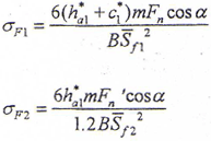 式中 σF1——外齒輪齒根彎曲應力