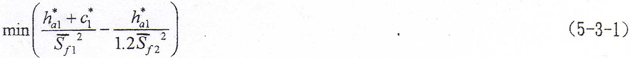 由目標函數(shù)(5-3-1)式及約束條件(5-3-2)式便構成本問題的優(yōu)化數(shù)學模型。通過對優(yōu)化數(shù)學模型的求解,可以計算出不同齒模數(shù)及相應的鼓度半徑下的優(yōu)化齒頂高系數(shù)值。表5-2給出了幾種不同輸入?yún)?shù)下的求解值,從表中數(shù)據(jù)可以看出,不同齒數(shù)及鼓度半徑,其優(yōu)化齒頂高系數(shù)不同,但都不超過0.7?紤]到齒頂高系數(shù)的統(tǒng)一,建議采用齒頂高系數(shù)為0.7是適宜的。值得指出的是,這種齒頂高系數(shù)的齒輪是采用標準齒頂高系數(shù)滾刀和插齒刀用特殊方法進行加工的。