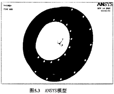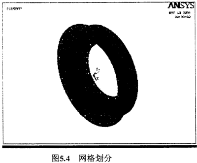 為了簡化計算方法和節(jié)省計算用時,首先對聯(lián)軸器的模型進(jìn)行簡化。因為鐵圈上的螺孔的存在會大大的影響計算的復(fù)雜程度和時間,但對計算結(jié)果的影響卻微乎其微,所以決定建模時省略螺孔。簡化后的模型網(wǎng)格劃分后如下圖5.7:
