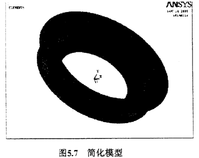 在ANSYS中建立模型,先通過建立如5.2所式二分之一的剖面圖,通過繞中軸線旋轉(zhuǎn)建立模擬模型如下圖5.3