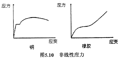 材料非線性包括塑性,超彈性,蠕變等,非線性應(yīng)力應(yīng)變關(guān)系是非線性結(jié)構(gòu)行業(yè)的普通原因,如圖5.10: