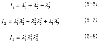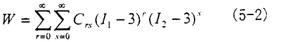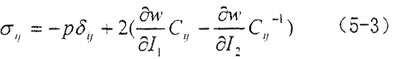 式(5-1)為超彈性材料的本構(gòu)關(guān)系,可以看出,建立本構(gòu)關(guān)系就是要建立應(yīng)變能函數(shù)的表達(dá)式。Mooney-Rivlin模型是1940看由Mooeny提出,后由Rivlin發(fā)展的。其中一般形式為