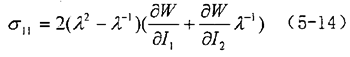 根據(jù)所取W的具體形式,可求出 的表達(dá)式,其中含有材料常數(shù),由試驗數(shù)據(jù)求得各伸長比及對應(yīng)的應(yīng)力,將多個試驗點(diǎn)的λ和σ11代入式(5-14),可求得這些材料常數(shù)值。