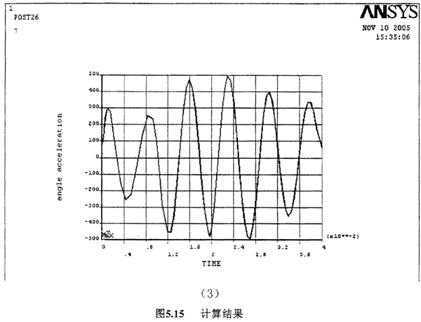 (1)為大小鐵圈的相對轉(zhuǎn)角,之所以振幅越來越小是因為理論值中的齊次方程的解隨著時間越來越接近于0。(2)為大小鐵圈的相對角速度;(3)為相對角加速度。速度和加速度都以類似于正弦曲線發(fā)生改變,之所以沒有完全按照正弦,是由于阻尼的存在,大大緩解了激勵載荷對聯(lián)軸器的影響。