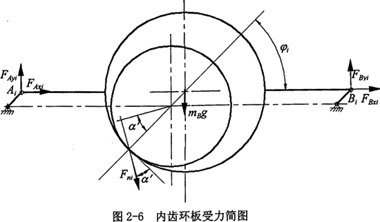 1.轉臂軸承上的作用力分析 內齒環(huán)板受力見圖2-6所示。
