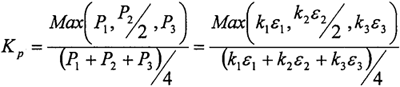 試驗中選用的電阻應(yīng)變片長度為0.2mm,電阻為119.8±0.2Ω,相差很小,即k1、k2/2、k3彼此差別很小,所以上式簡化為:
